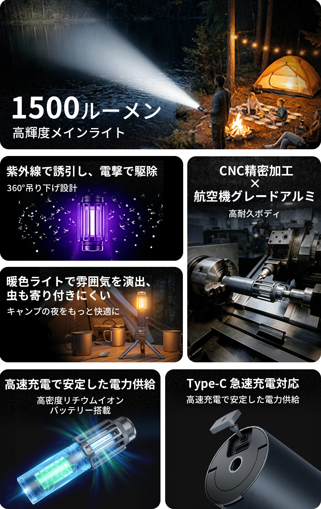 さらに、虫が寄り付きにくい設計により、「ライトをつけると虫が集まる」といったストレスを軽減。夜のアウトドアも、より快適に楽しめます。