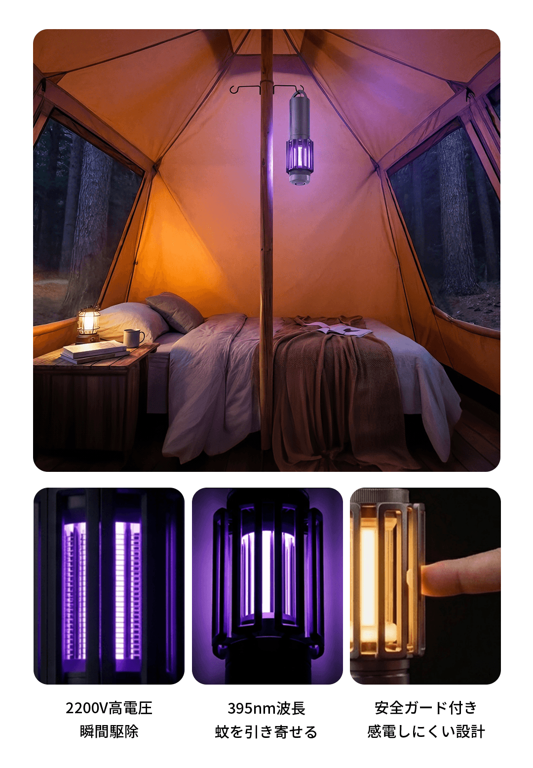 395nmの紫外線ライトで、蚊をしっかり引き寄せます。